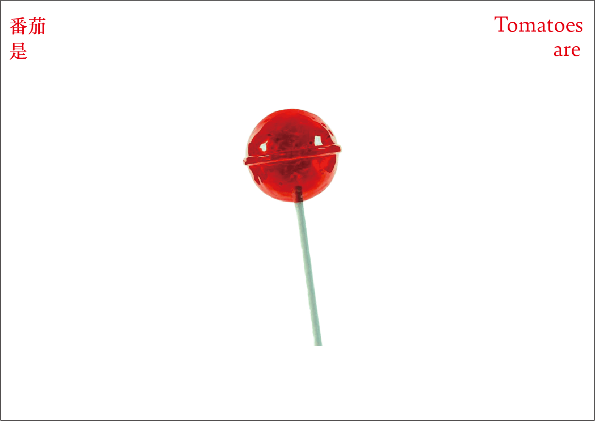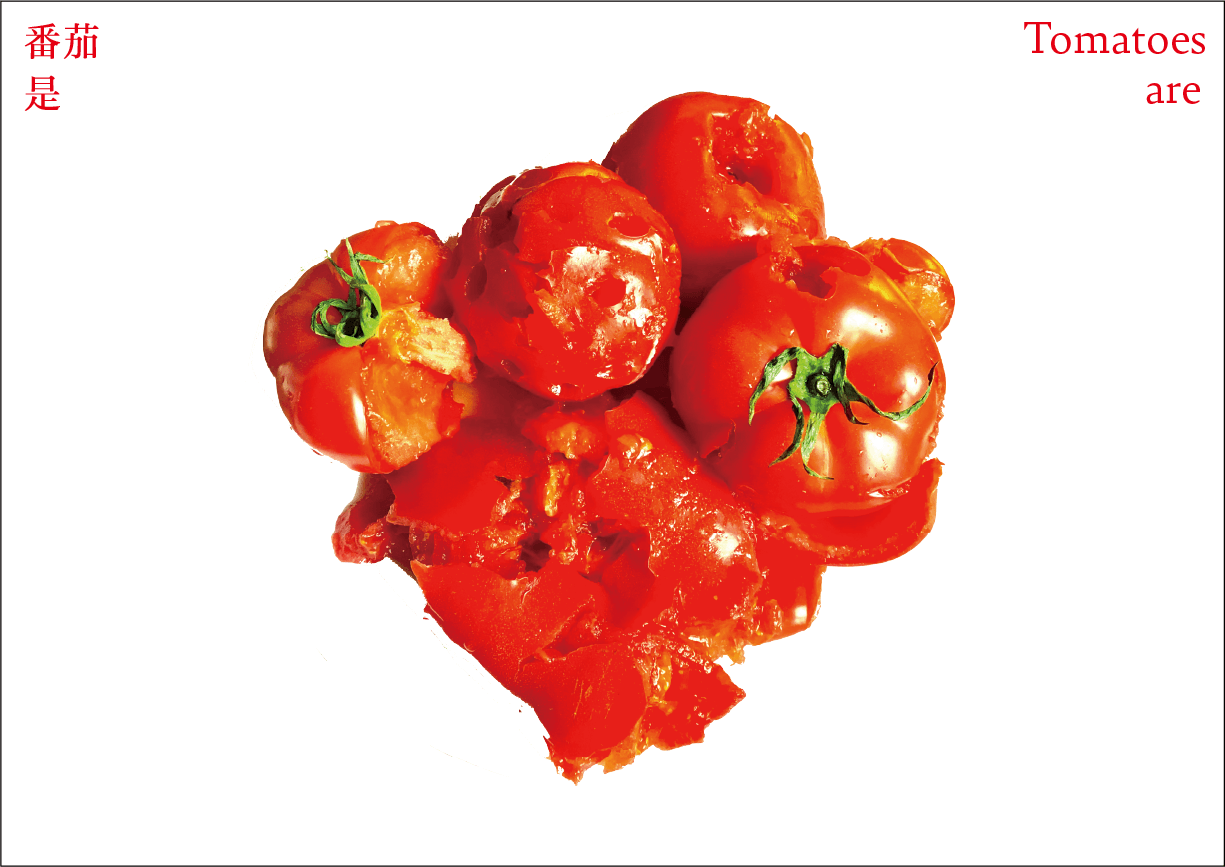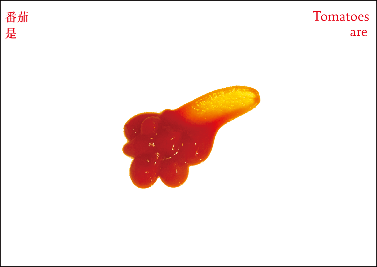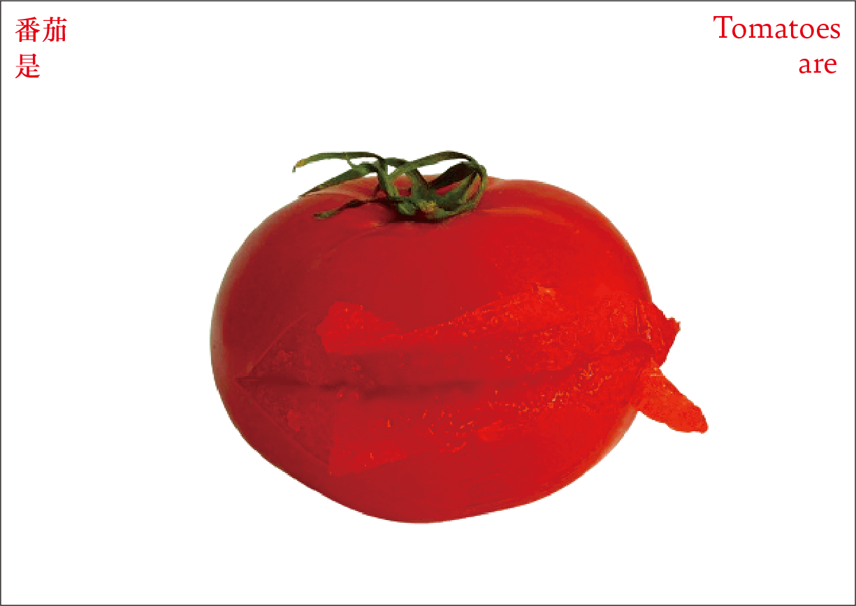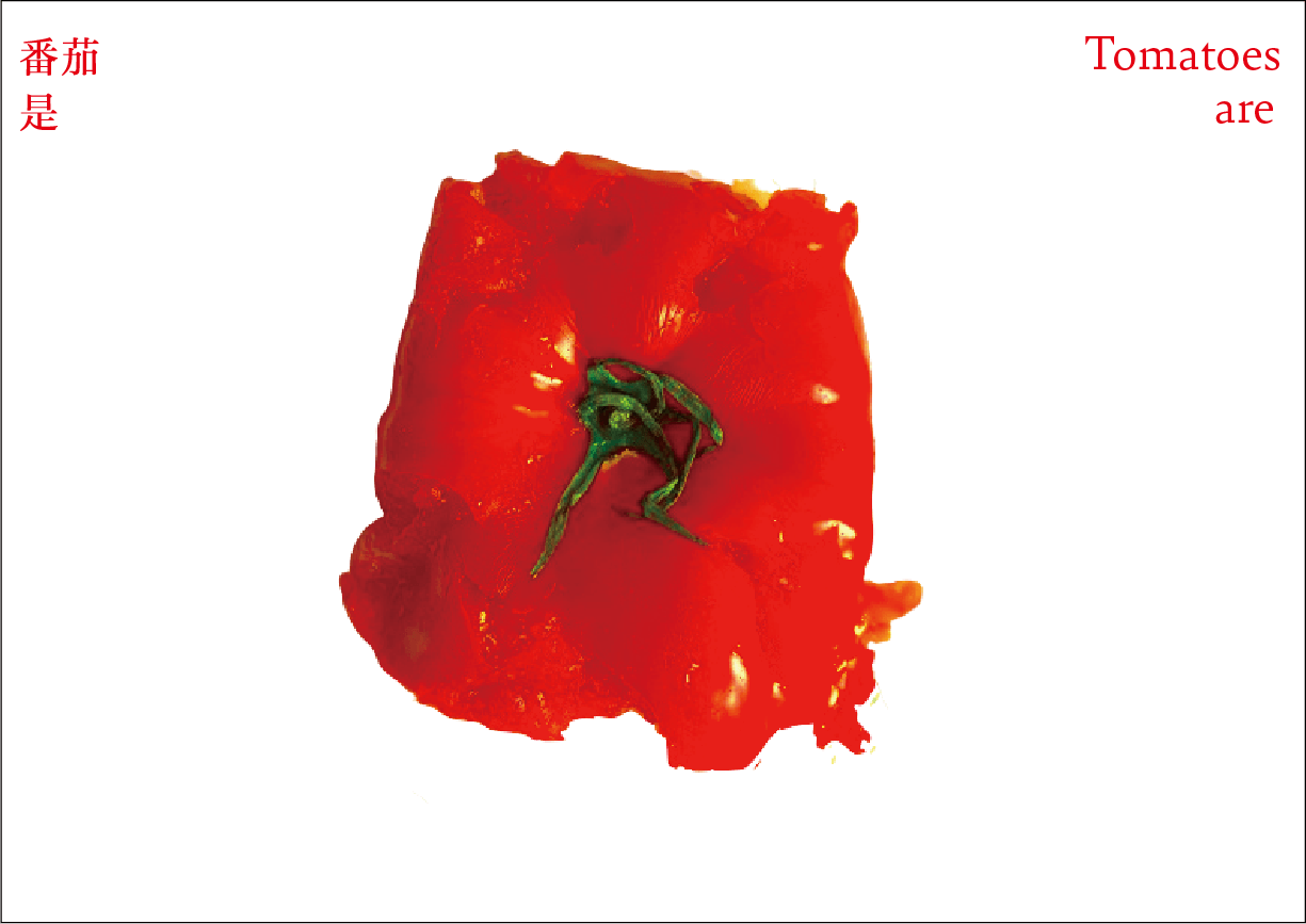 番茄作为一个符号,符号是有限的,客体的解释是无限的。卡片作为解释项,是主体对番茄加以认知、解释、感知、反应的过程和结果。卡片可以是一种思想观念,也可以是一种情绪,还可以是一种行动。通过联想分析,底层结构变得可见,新的形式出现。读者被邀请去感知和重新定义——重新思考已知的番茄轮廓,探索跟番茄有关的系统。