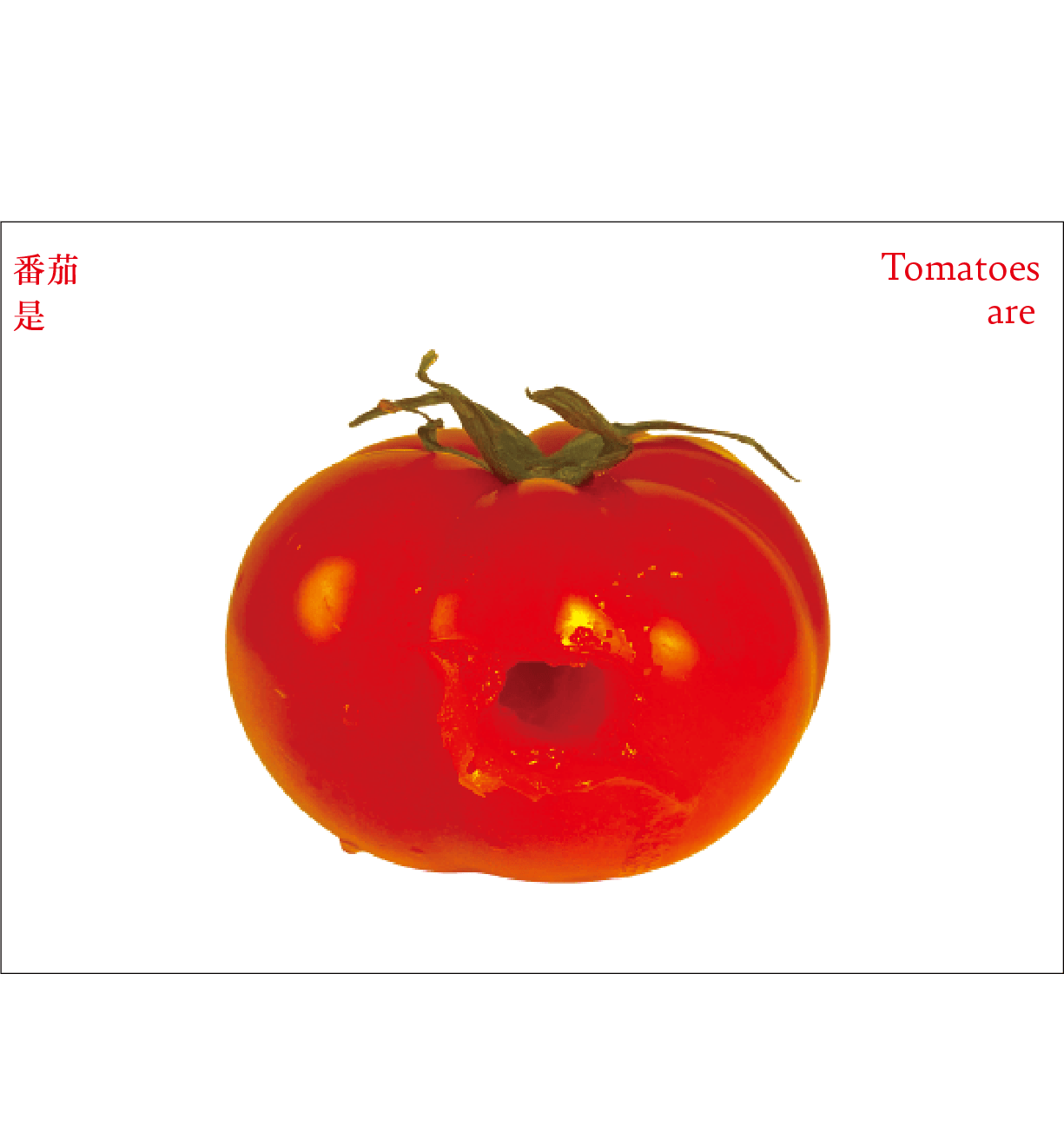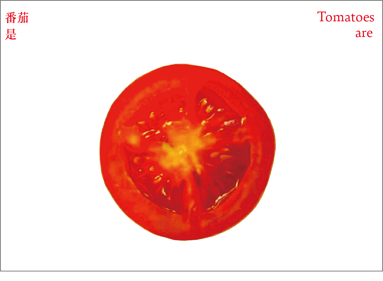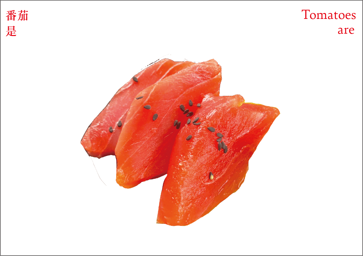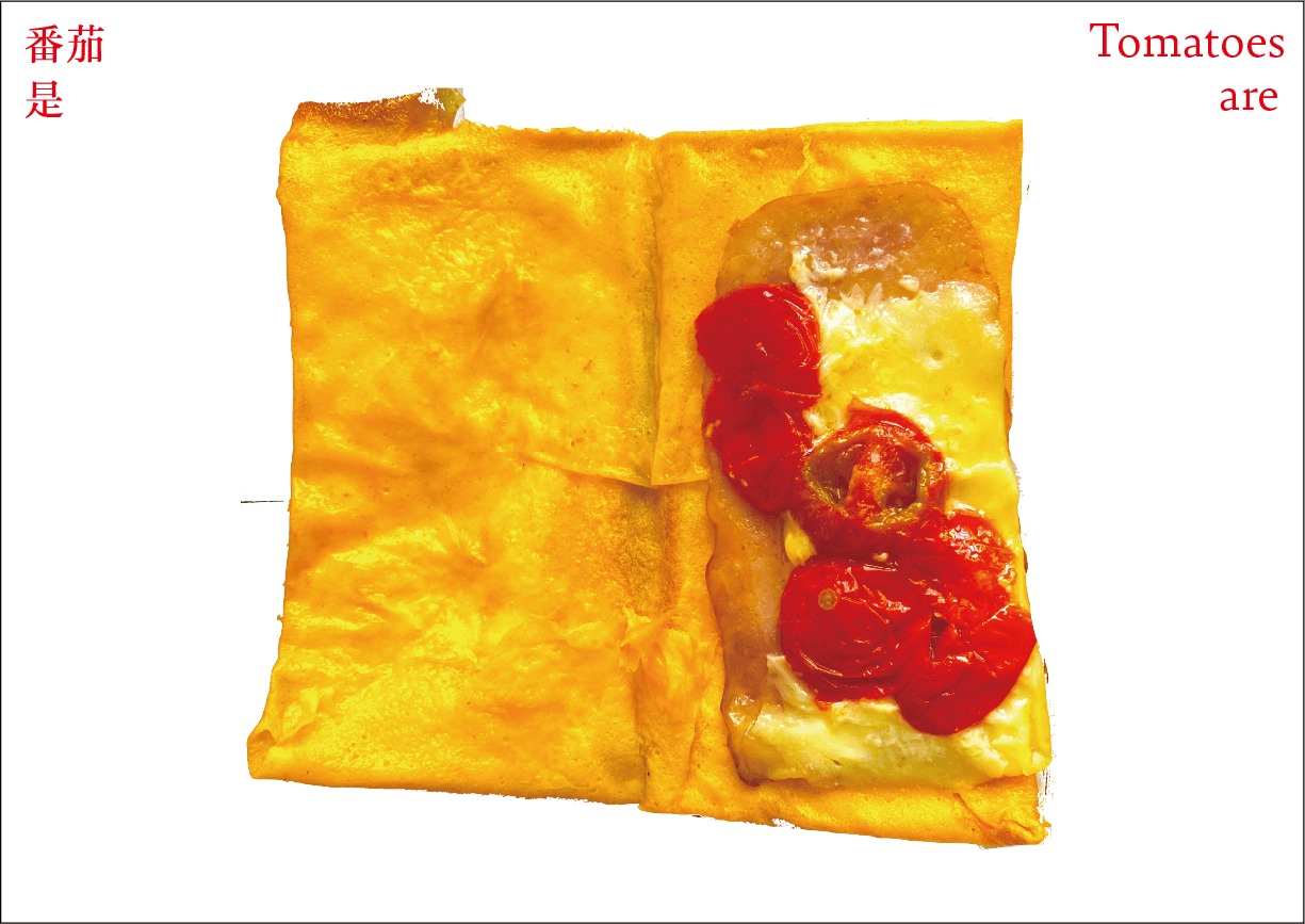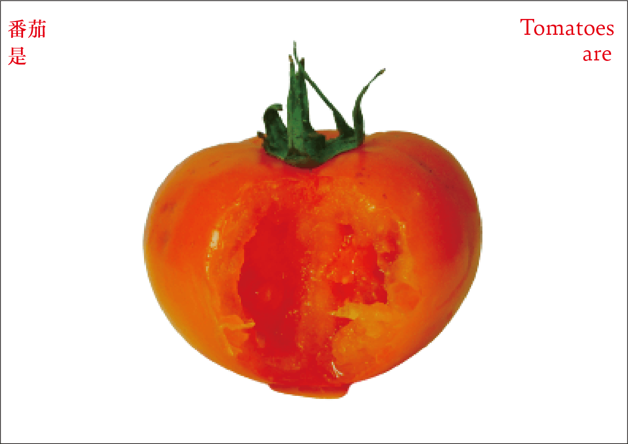 番茄作为一个符号,符号是有限的,客体的解释是无限的。卡片作为解释项,是主体对番茄加以认知、解释、感知、反应的过程和结果。卡片可以是一种思想观念,也可以是一种情绪,还可以是一种行动。通过联想分析,底层结构变得可见,新的形式出现。读者被邀请去感知和重新定义——重新思考已知的番茄轮廓,探索跟番茄有关的系统。